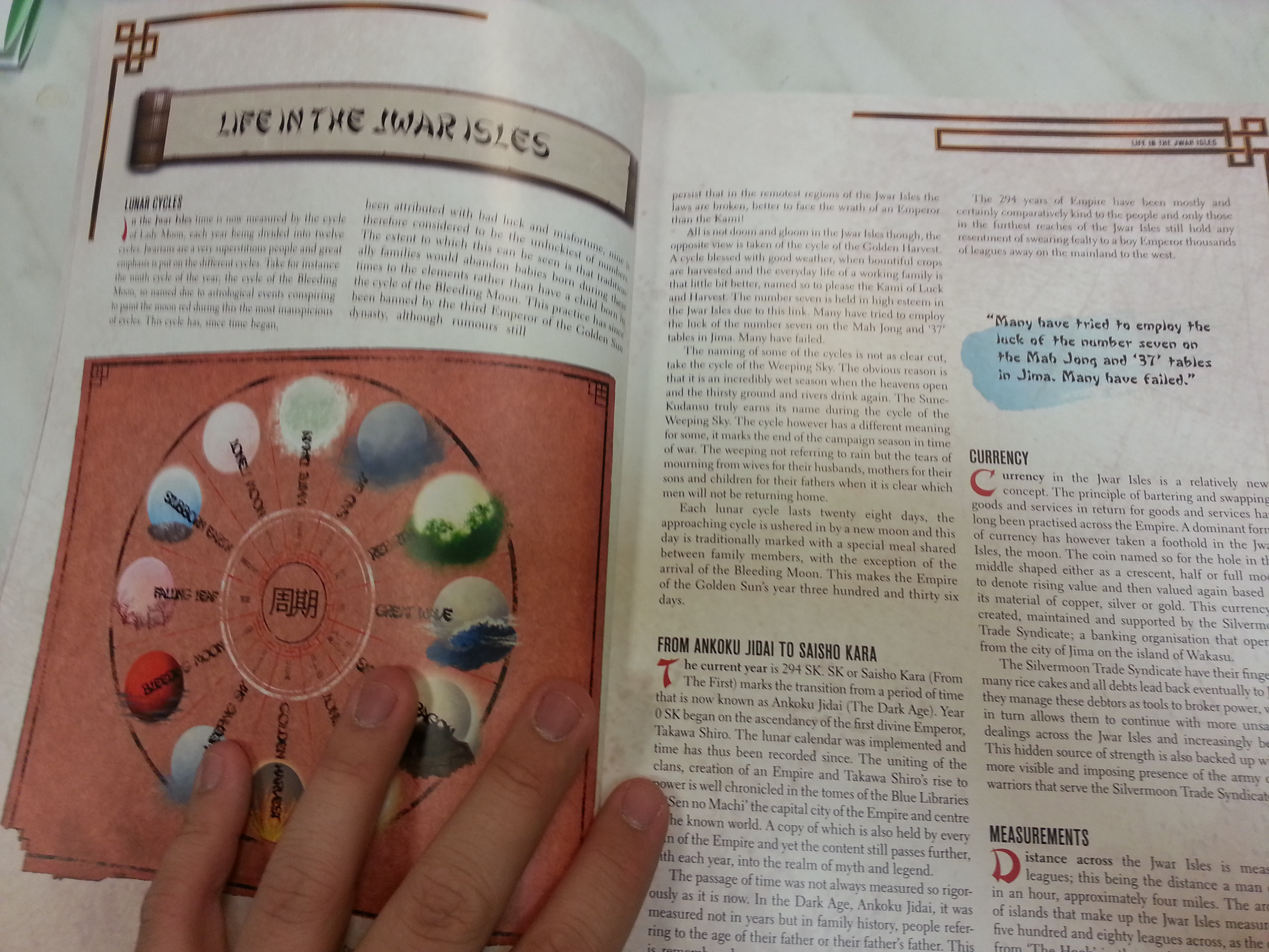 I love this part of the book. A tutorial on how to make realistic looking bamboo! Though it is sparse, it is a great idea! Too bad they didn’t add a few more tutorials to help give their player base some insight and ideas on creating terrain, bases and maybe even conversions of their models. Still a great addition, in my opinion!