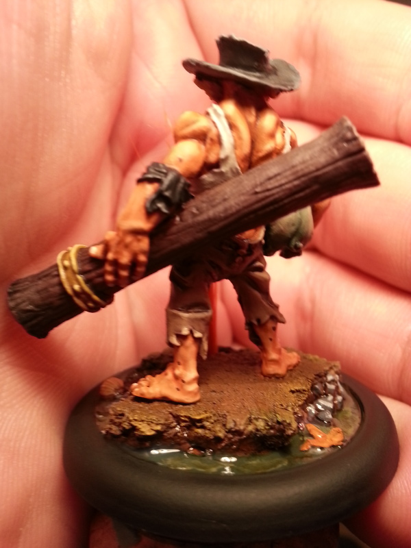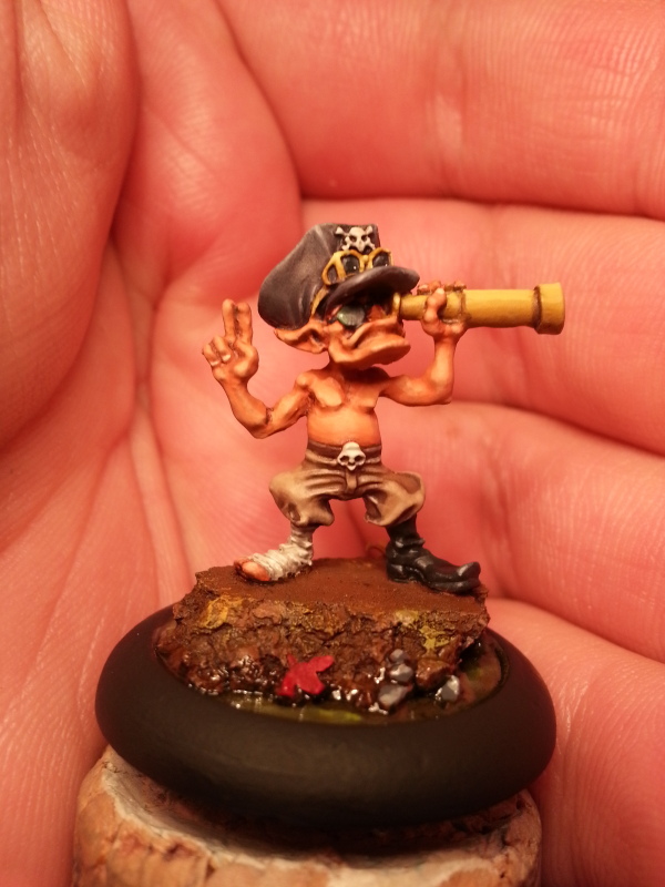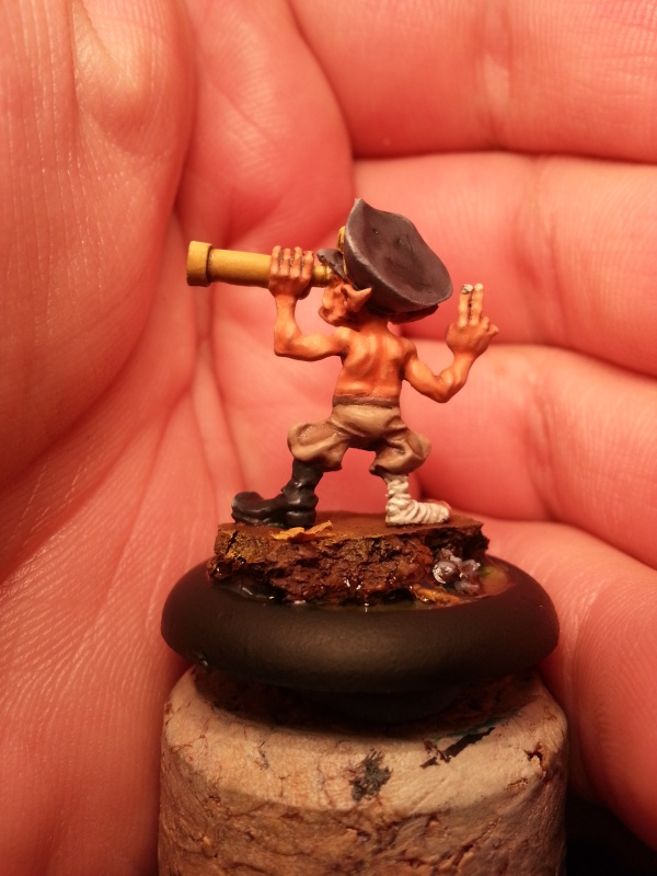 This is Stinky Pete. A frisky little fella who abandoned his Pigapult to see the action face to face for once (with a telescope of course). One of my all time favorite gremlin models. Originally he is supposed to go on the Pigapult base, but I figured he would make a great Bayou Gremlin, especially when you need a lot of bodies for Som’er. A really cool and fun model to paint, though I dislike bandages, like on his feet. They just drive me nuts.