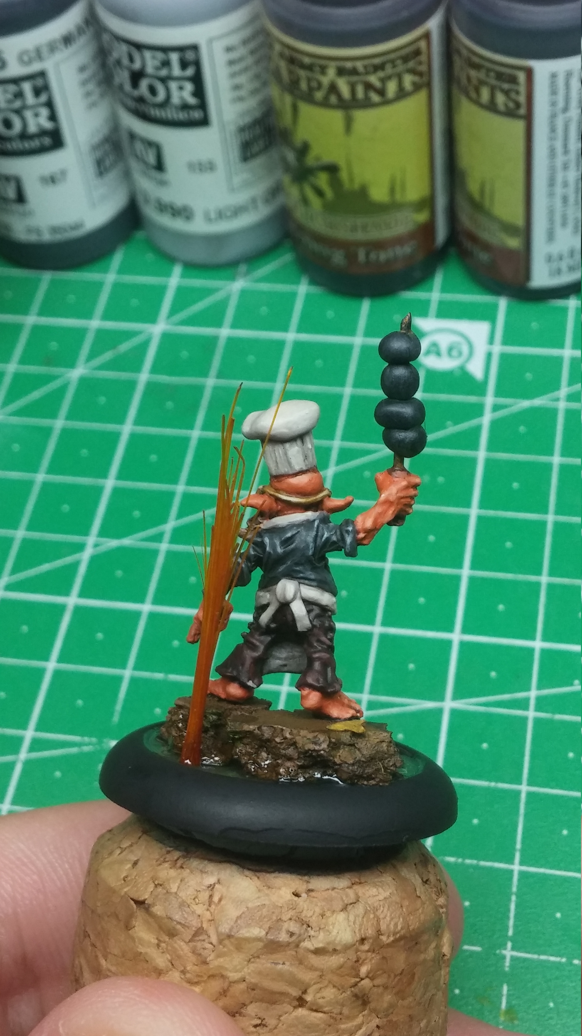 Next up is a model I converted. My first converted model as well. I didn’t do too much, really. I just added an apron, chef hat and some undefinable chunks of nastiness on a metal poker. I am pleased with how it turned out.