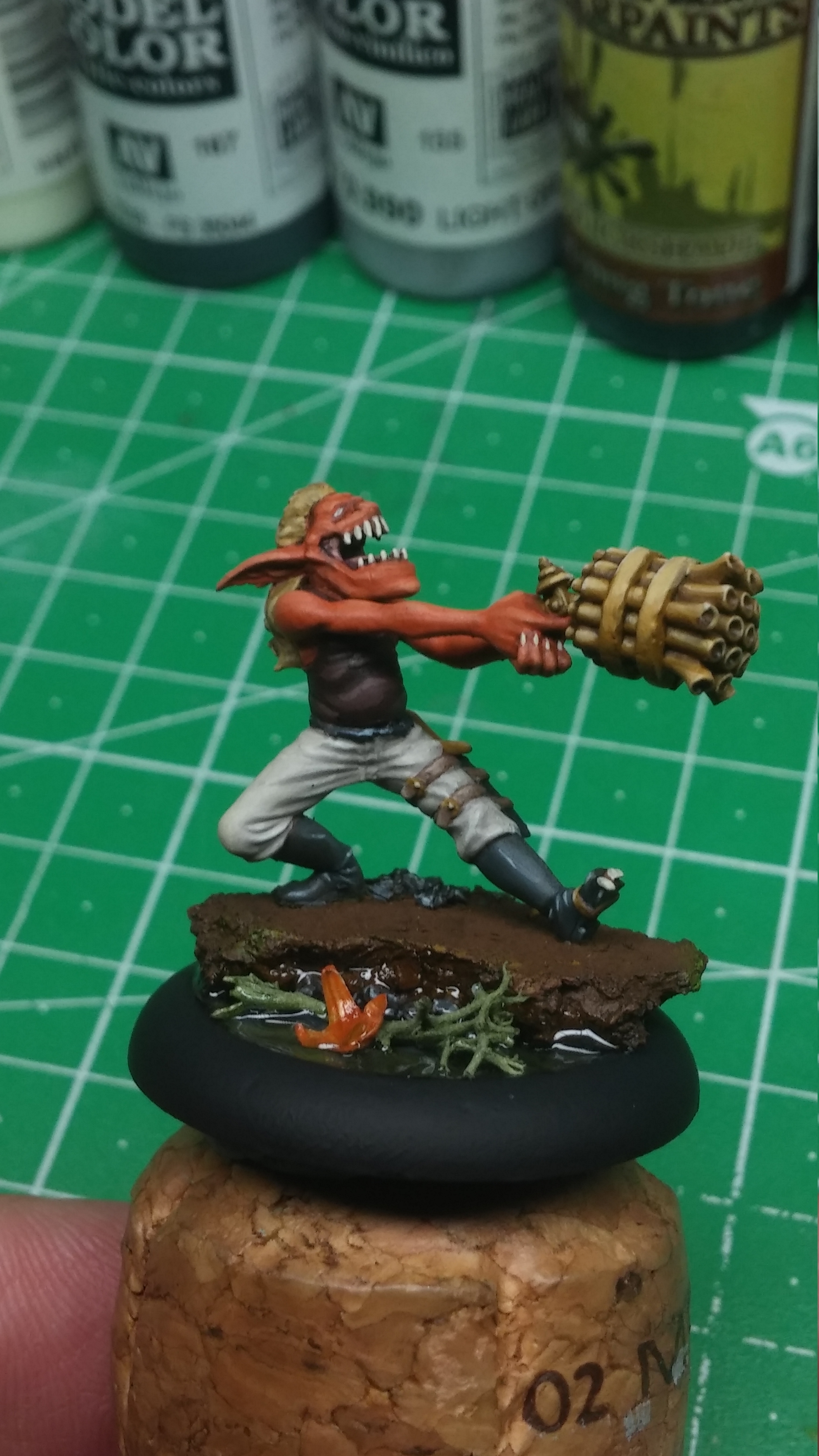 First up is Som’er Teeth Jones and his four Skeeters. Som’er is one of my favorite Gremlin models of the entire range. I really enjoyed painting him and did tinker around a bit with the ‘metallic’ shading of his weapon. I based it a bit on what a trumpet looks like. It still looks kind of cool. The four Skeeters are all pretty easy on the eyes. Nothing really striking about them. They are cheap little extras to play with, so I can live with them not being as vibrant as their master.