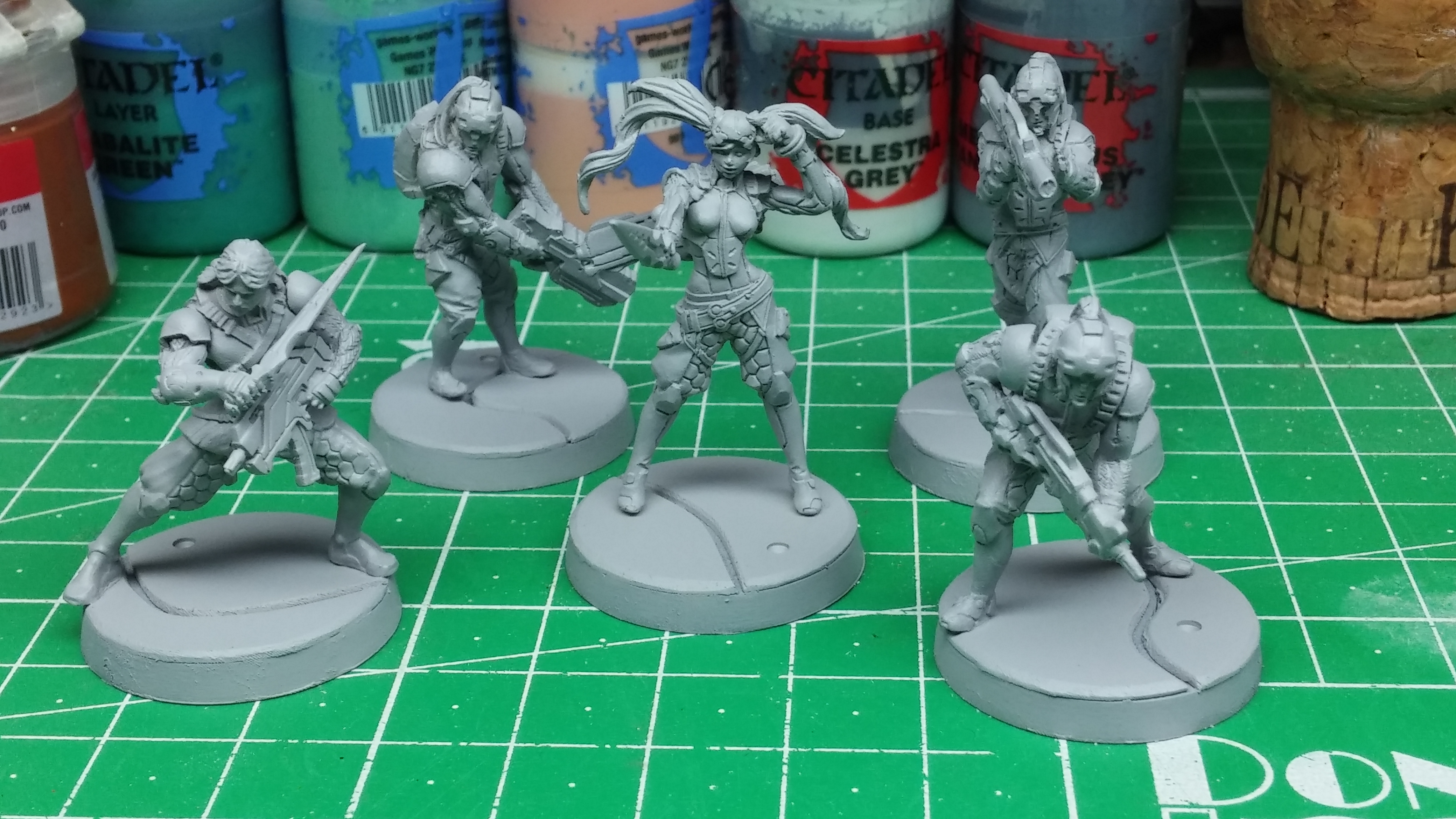 From unprimed to primed. A great looking squad that proved to me that my funky idea for a color scheme works well in bulk. My first 100 Points finished for Infinity. Now I can start off with the fun slow grow campaign my friends and I are going to start once 3rd Edition is released.