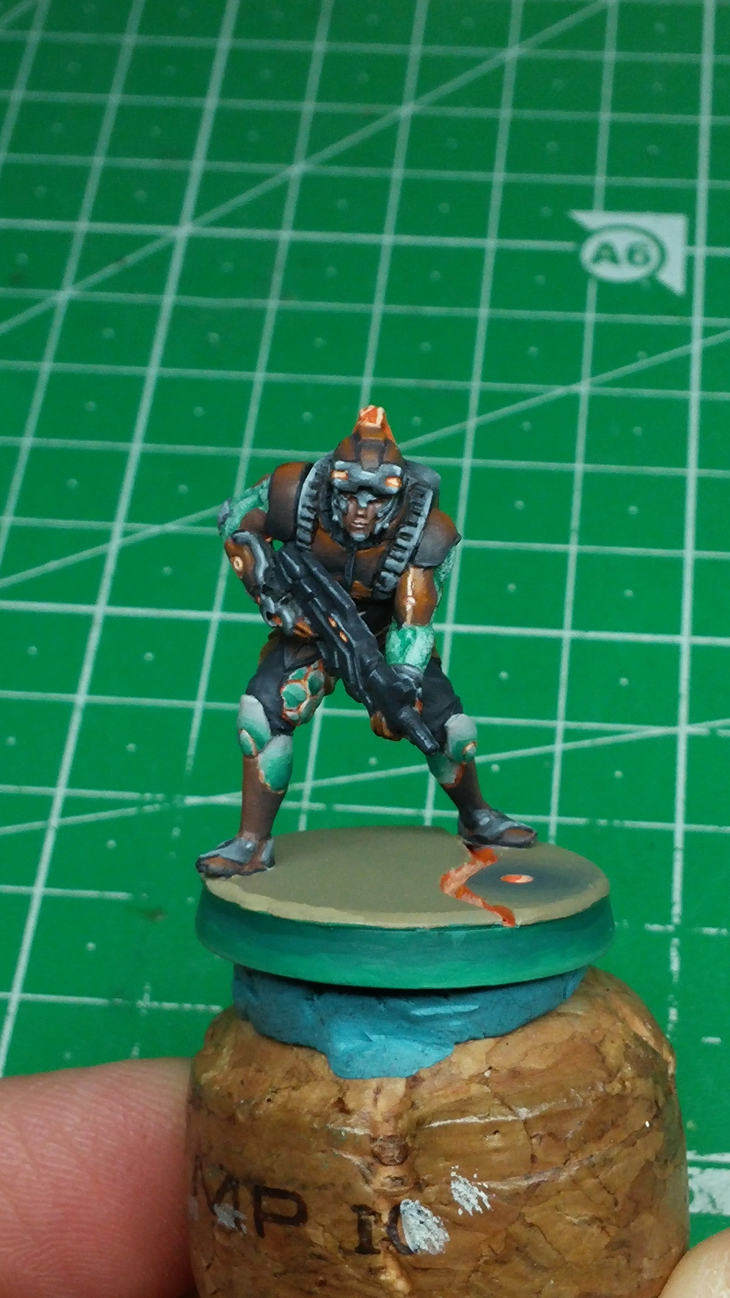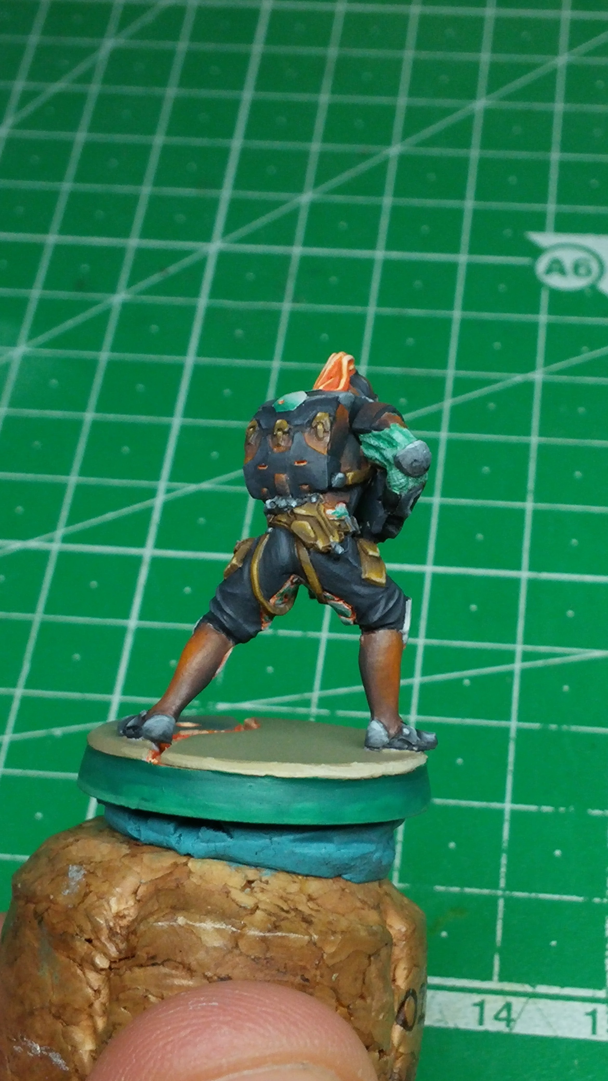 This is the third and final Thorakitai model available. I am hoping CB will eventually release more models with alternate weaponry, but I guess all the other fancy models are more important to them at the moment. Rant aside, I enjoyed painting this model quite a lot. His pose is fun and he looks just as menacing and tough as the rest of his squad. Painting between his chest and the submachine gun was a pain in the ass, but I guess that is my own fault. I could have glued the arm on after painting, but I am just not too much into doing it perfectly.
