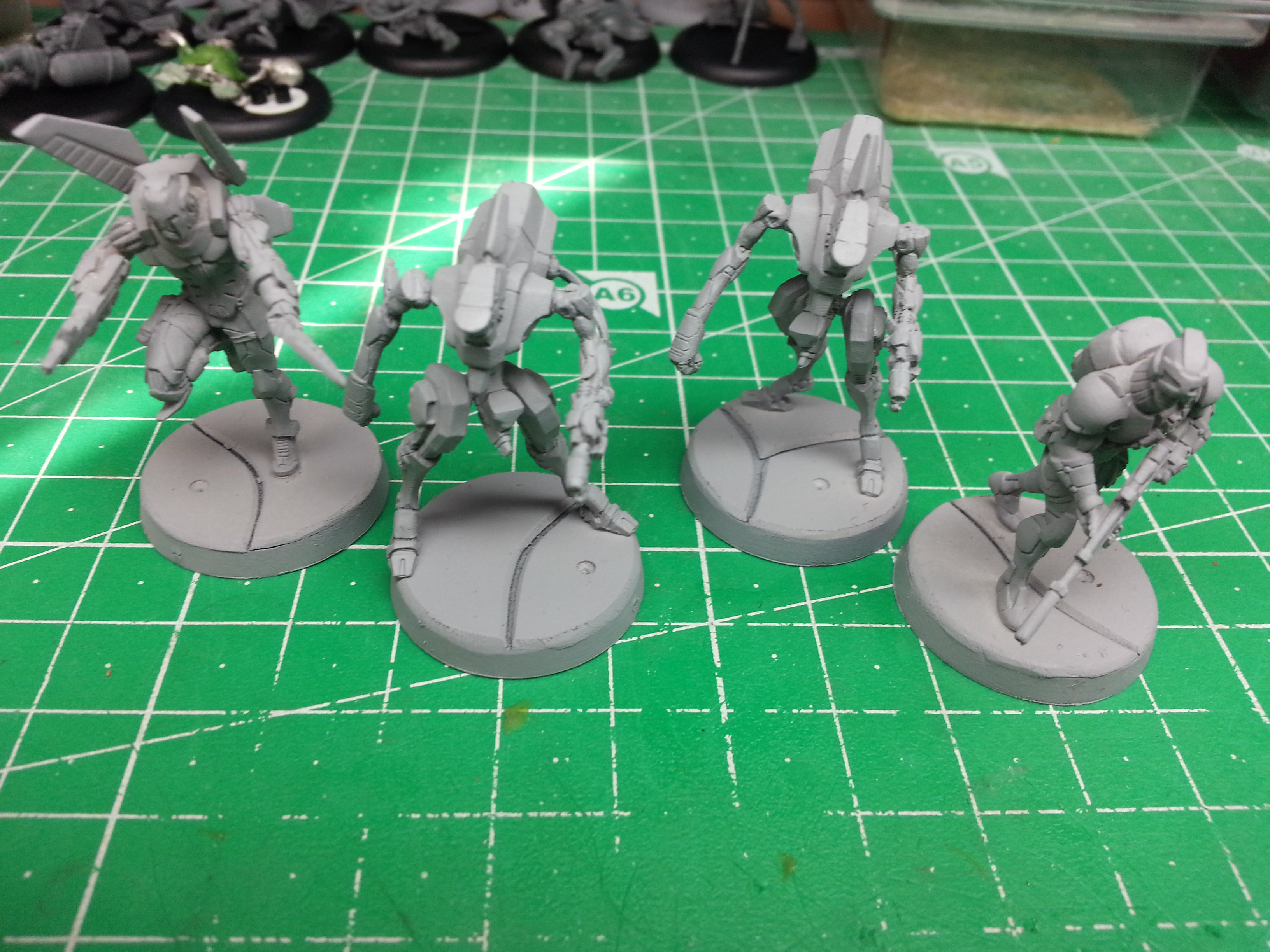 This is a small portion of models I only want to paint so I can get a couple of demo runs in with a friend of mine, Flo. One of the minis is already slightly painted I did a small paint job on her skin ( I intend to paint over this and redo it anyway). Jim gave his blessings. The models are: