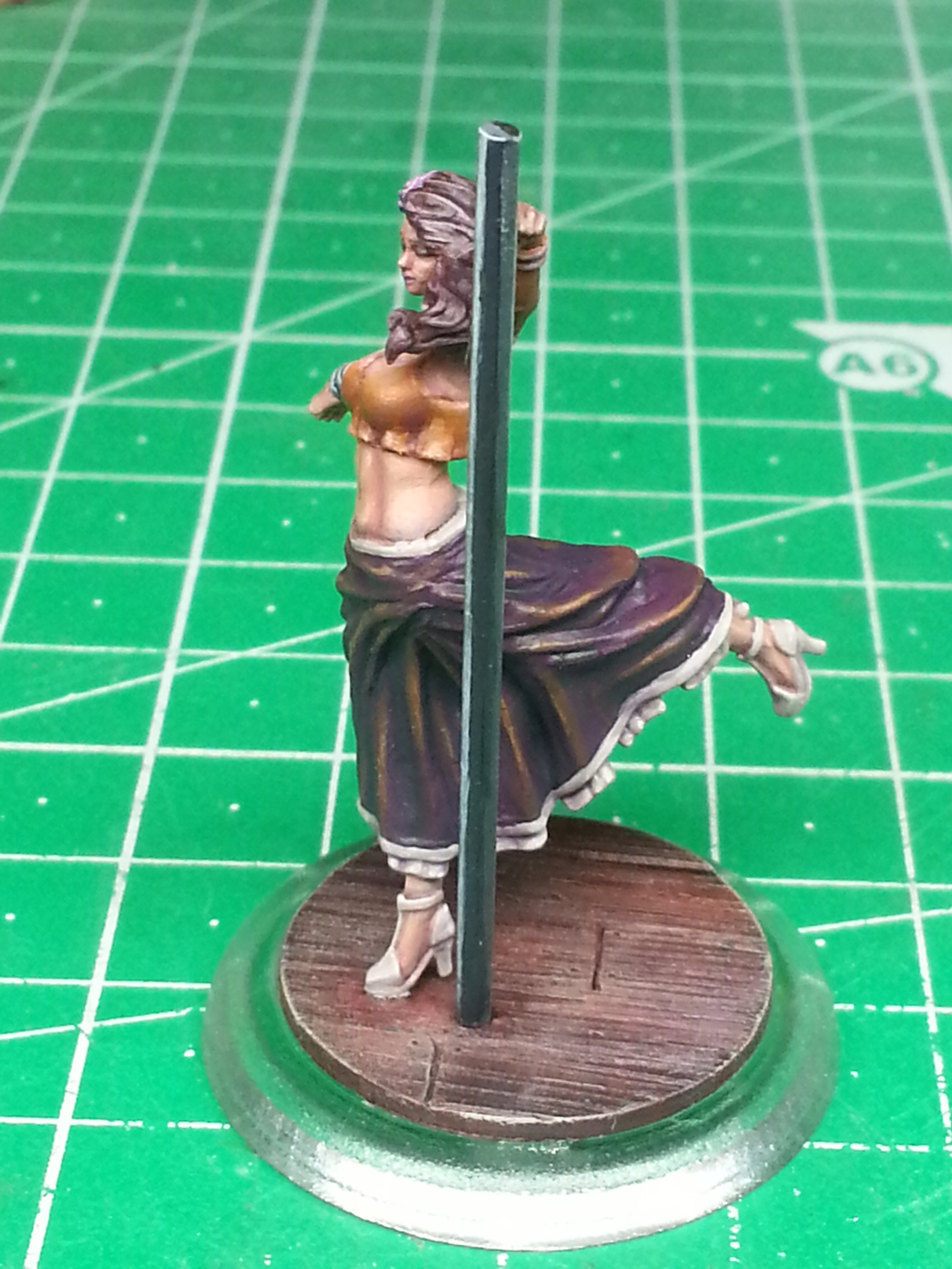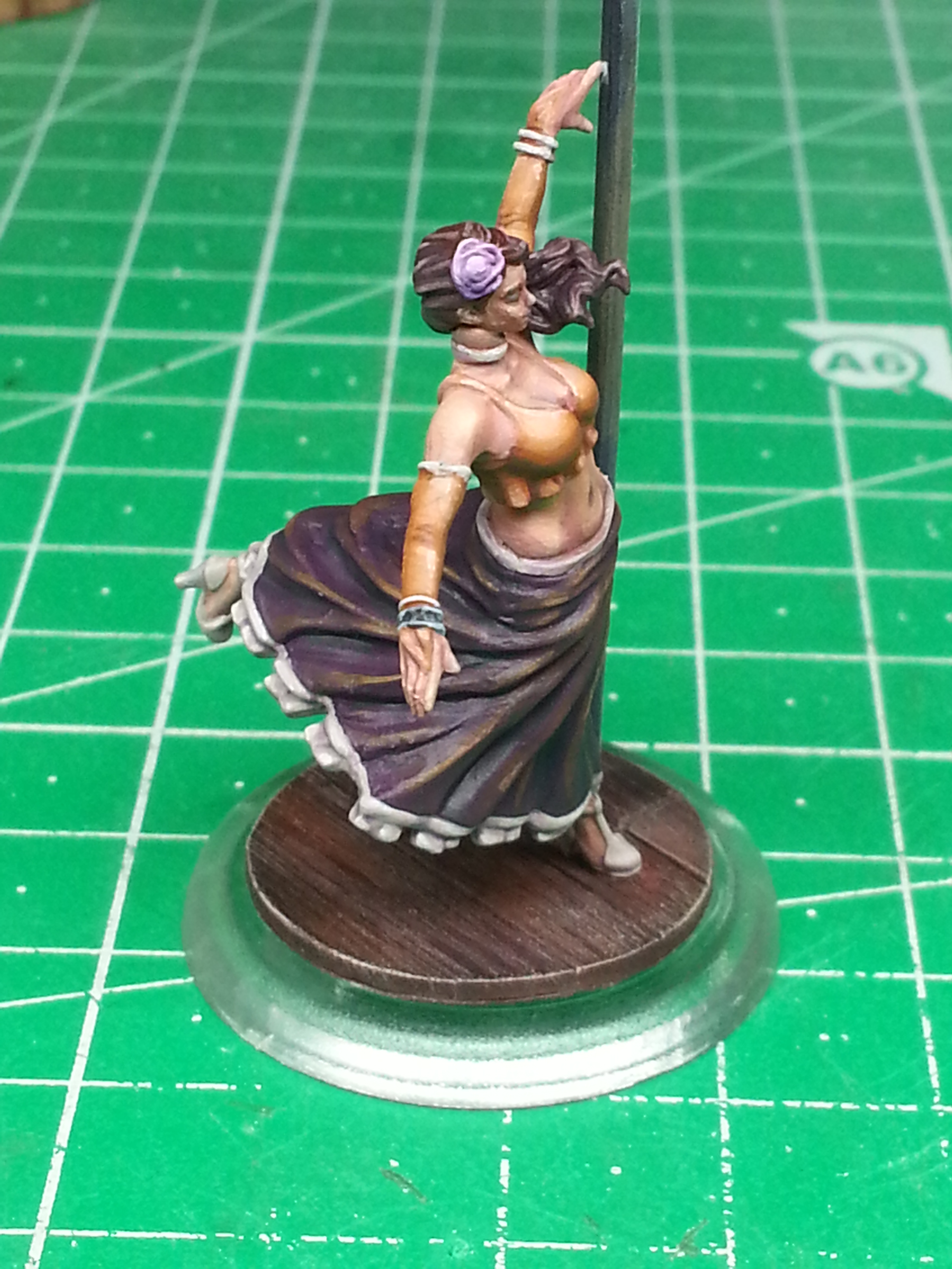 Besides the dancing pole being half-assed (I just couldn’t manage to highlight straight lines, even with a flat side of the brush…) I am really pleased with the results. Her skin is a new level for me on miniatures in this scale. More color variety and blends than usual.