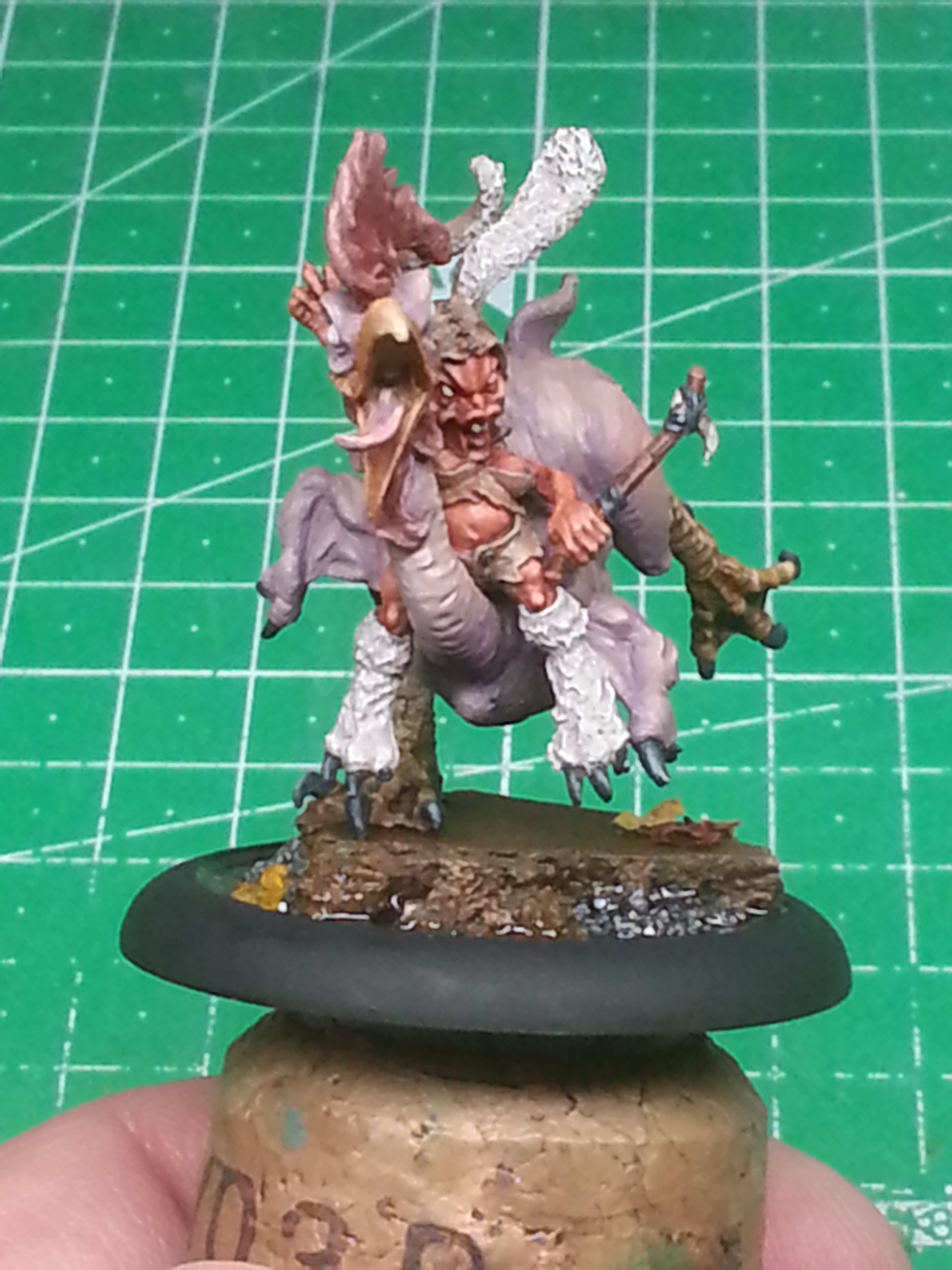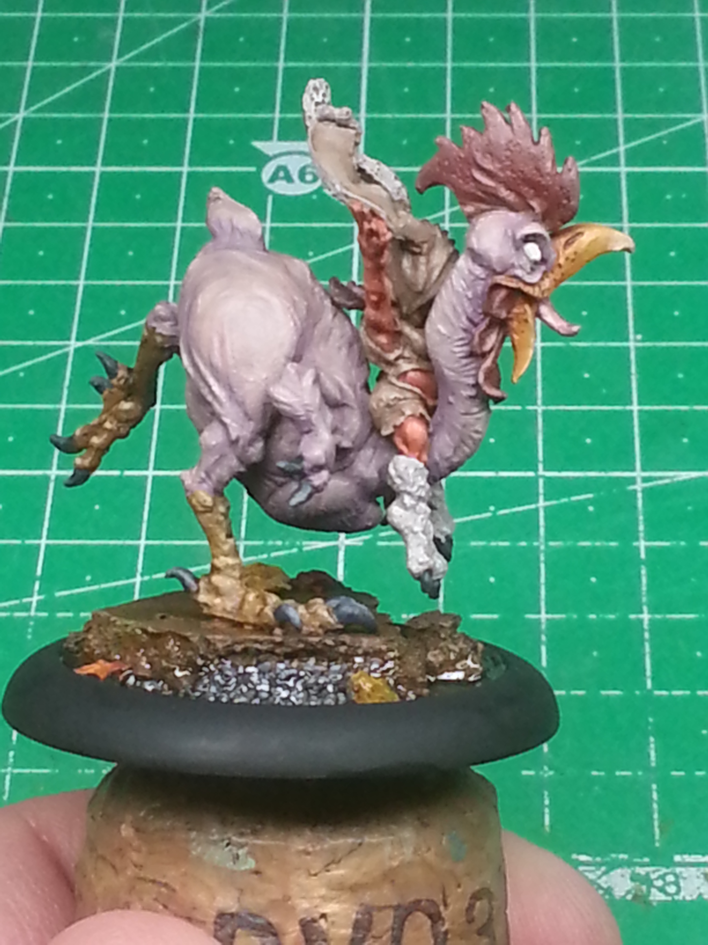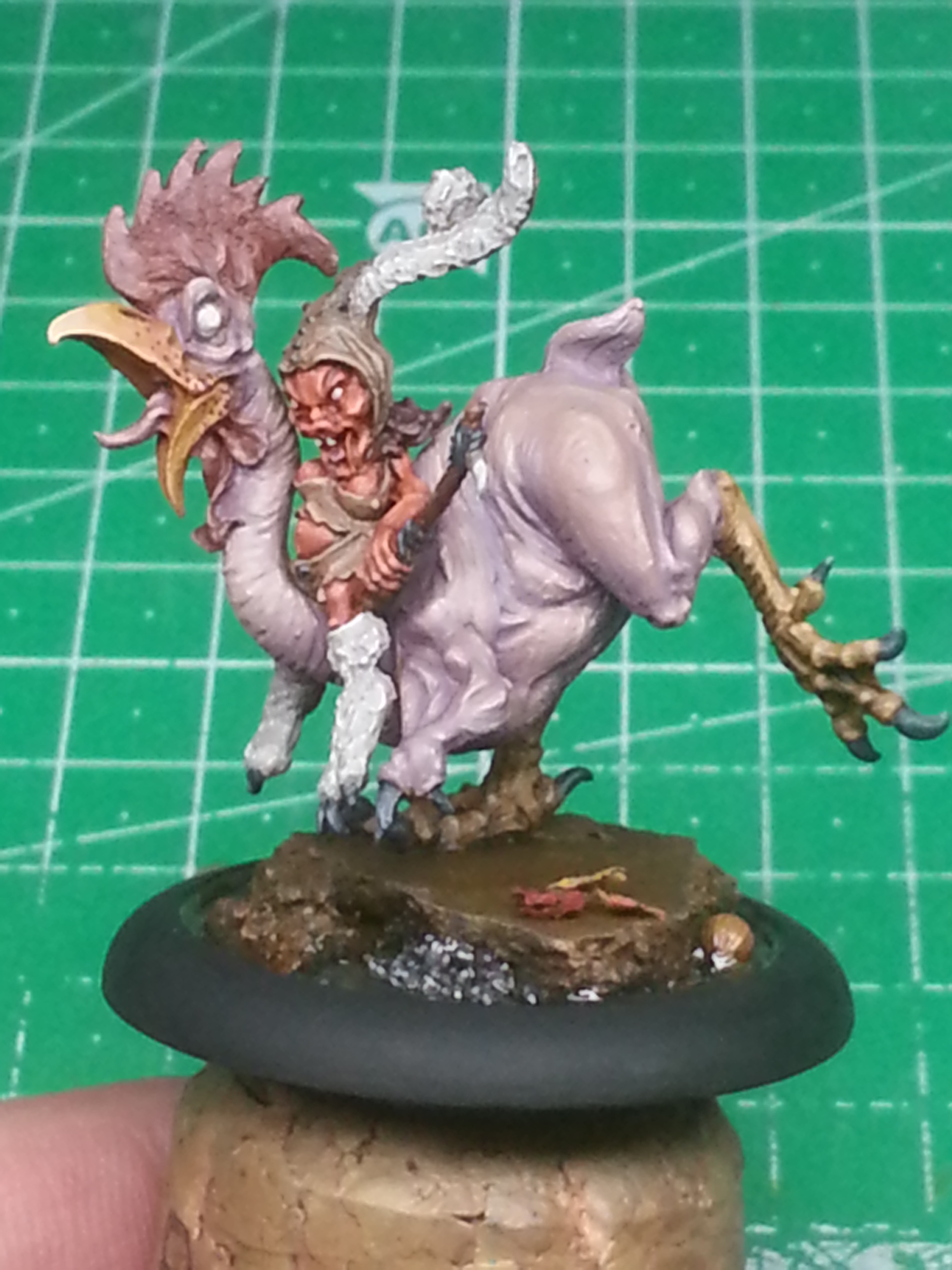 I love this model. It is a giant, crazy, feather-plucked and enraged chicken with a gremlin rider slapping its butt with a stick. I absolutely love this model. One of the reasons I still say the old style of models had its merits. The newer Rooster Riders all have realistic looking chickens, which is great and all, but still lacks the craziness of the general idea. This one embodies it perfectly!