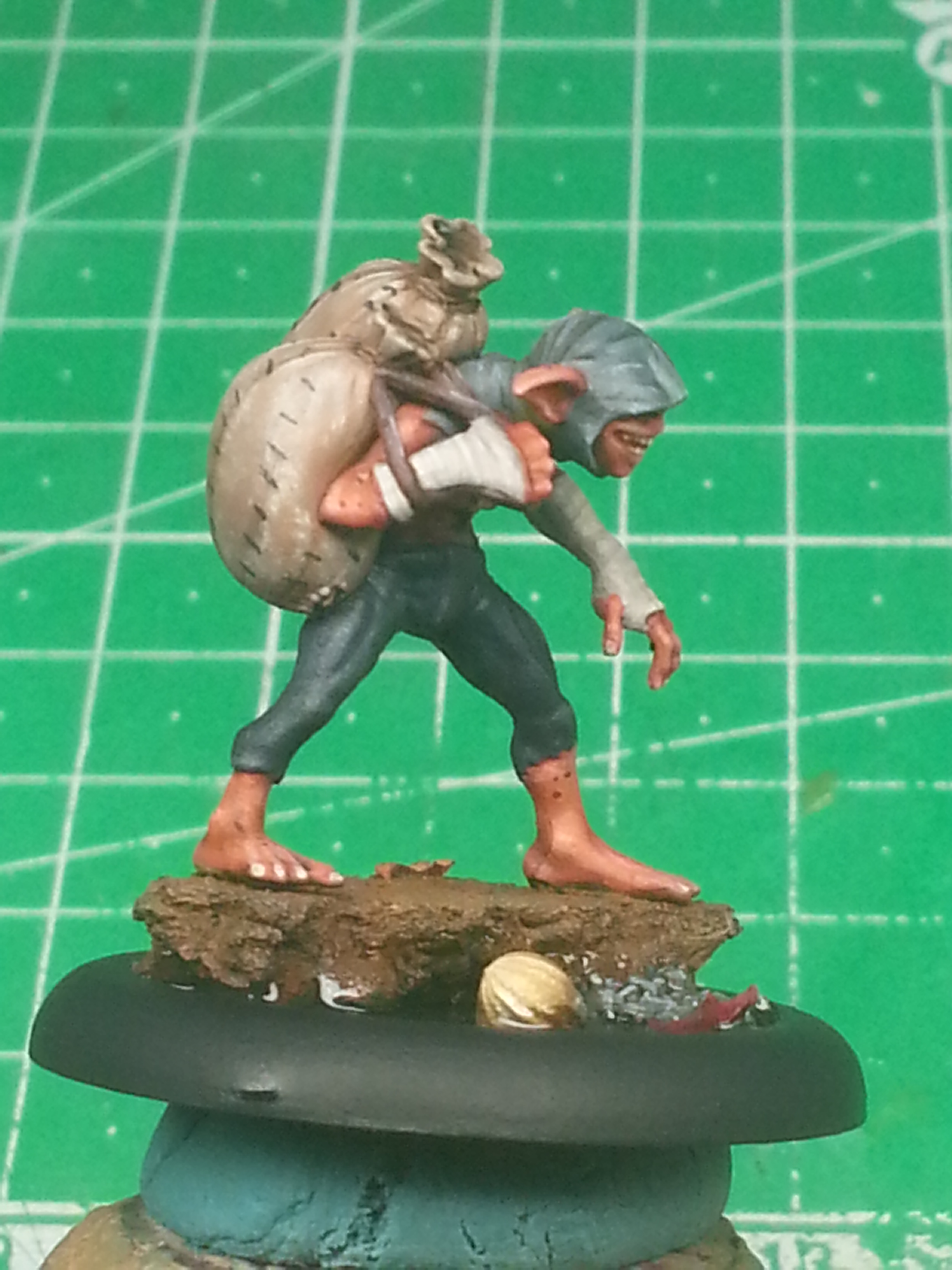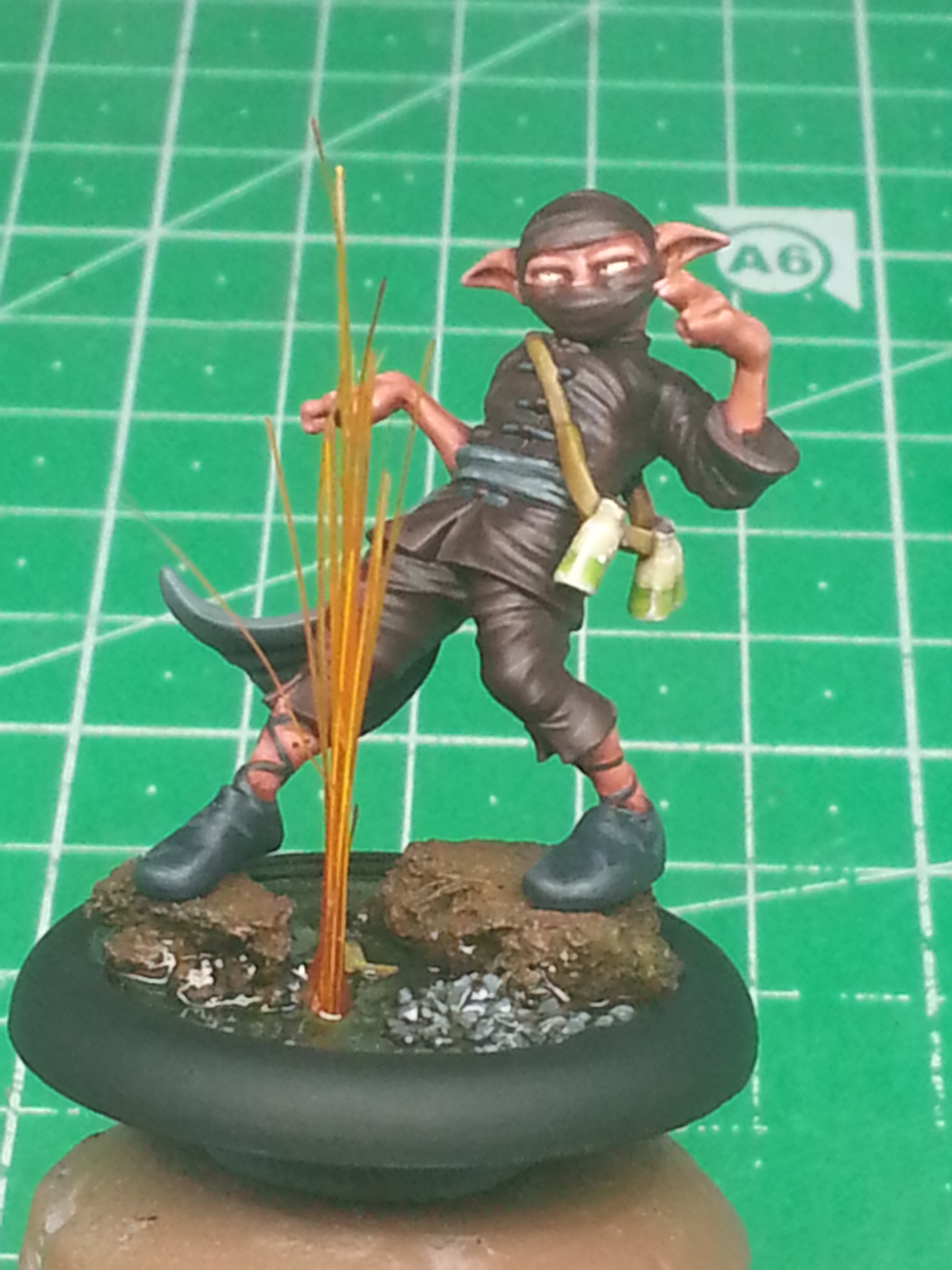The third runt of the litter was somewhat okayish to paint. The brown color I chose for him is a bit annoying to paint. I can only explain it like this: I like uniformity. Thus I paint models belonging to other models I have painted in the same fashion/style as the previous ones. Basically I have to paint with a ‘lower’ skill than what I can do and enjoy painting more. I could do a far better and more skilled approach, but would be bothered by a kick ass model accompanying models that are not as bad-ass. Thus I force myself to paint a lower quality and unfortunately enjoy painting it less. Regardless of this the model wasn’t terrible to paint. I hate it for being so hugely out of scale compared to other gremlin models. This guy is a huge dude for a Ht 1 model…