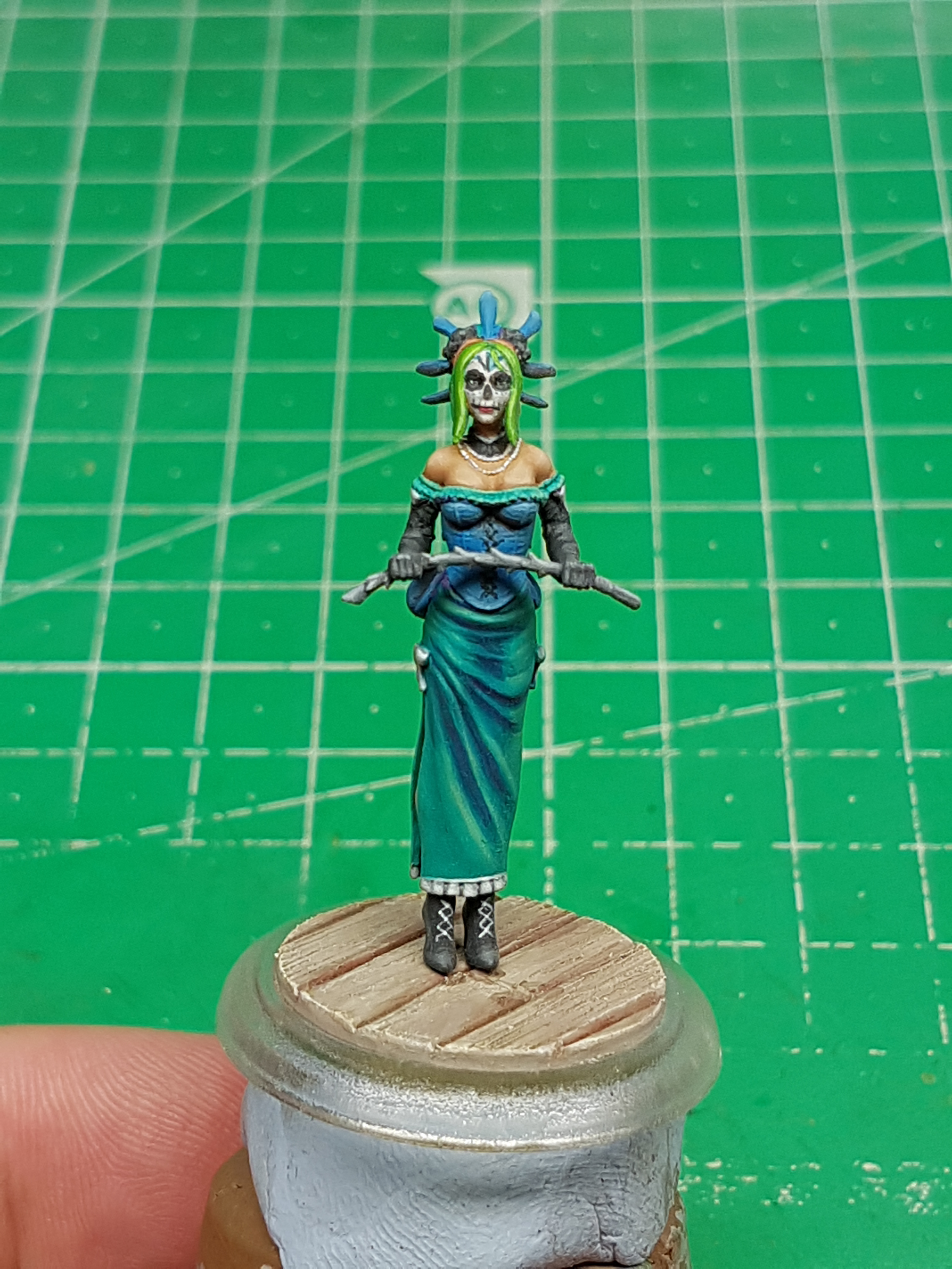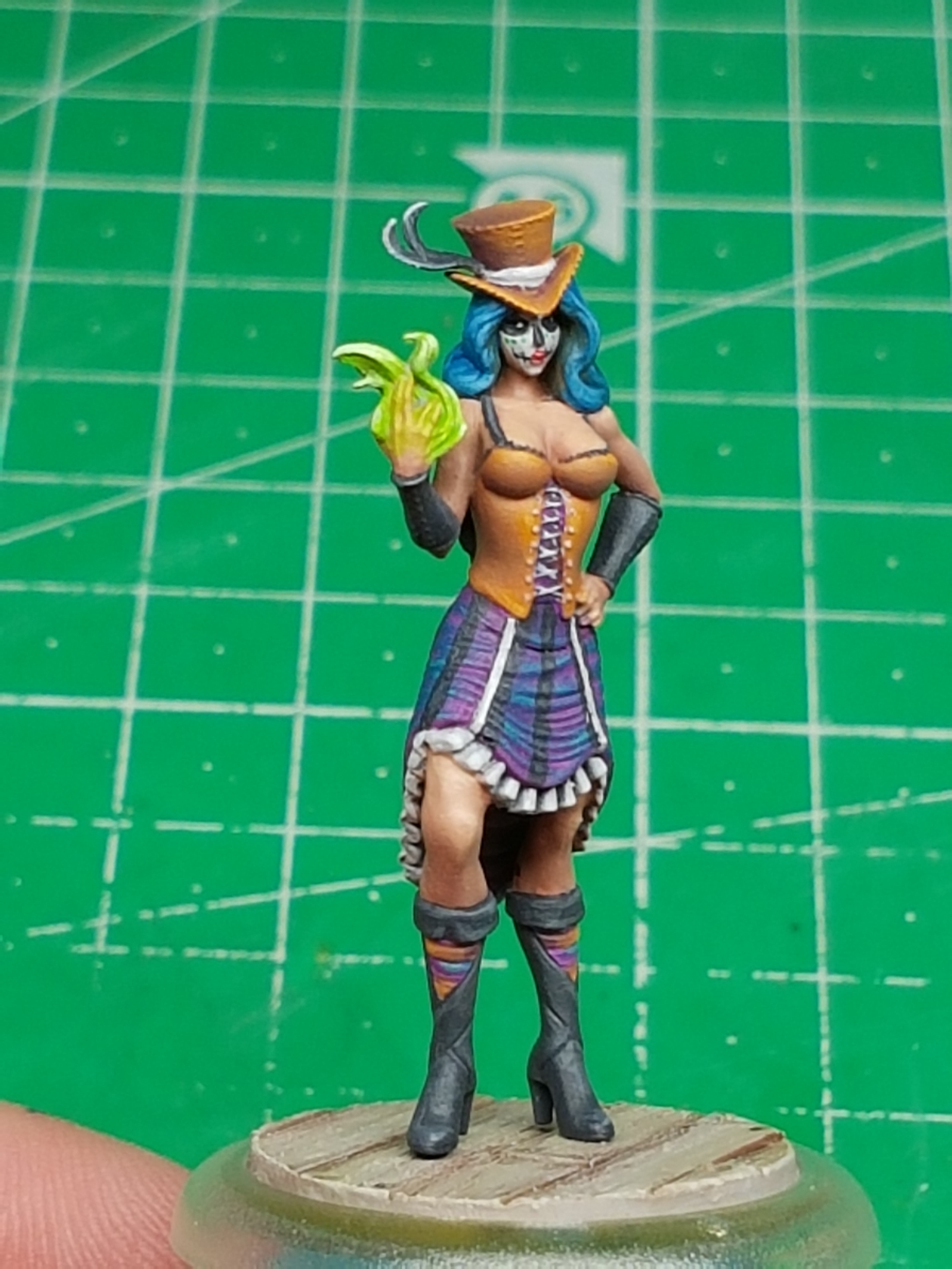 In my previous post I shared a small band of pretty girls able to kick some serious butt (They actually do in-game; holy shit!) who are also themed around a very colorful and not so dark approach to Dia de los Muertos, the Day of the Dead. In this post you will see the finished crew (Colette starter box + Johanna + Angelica).