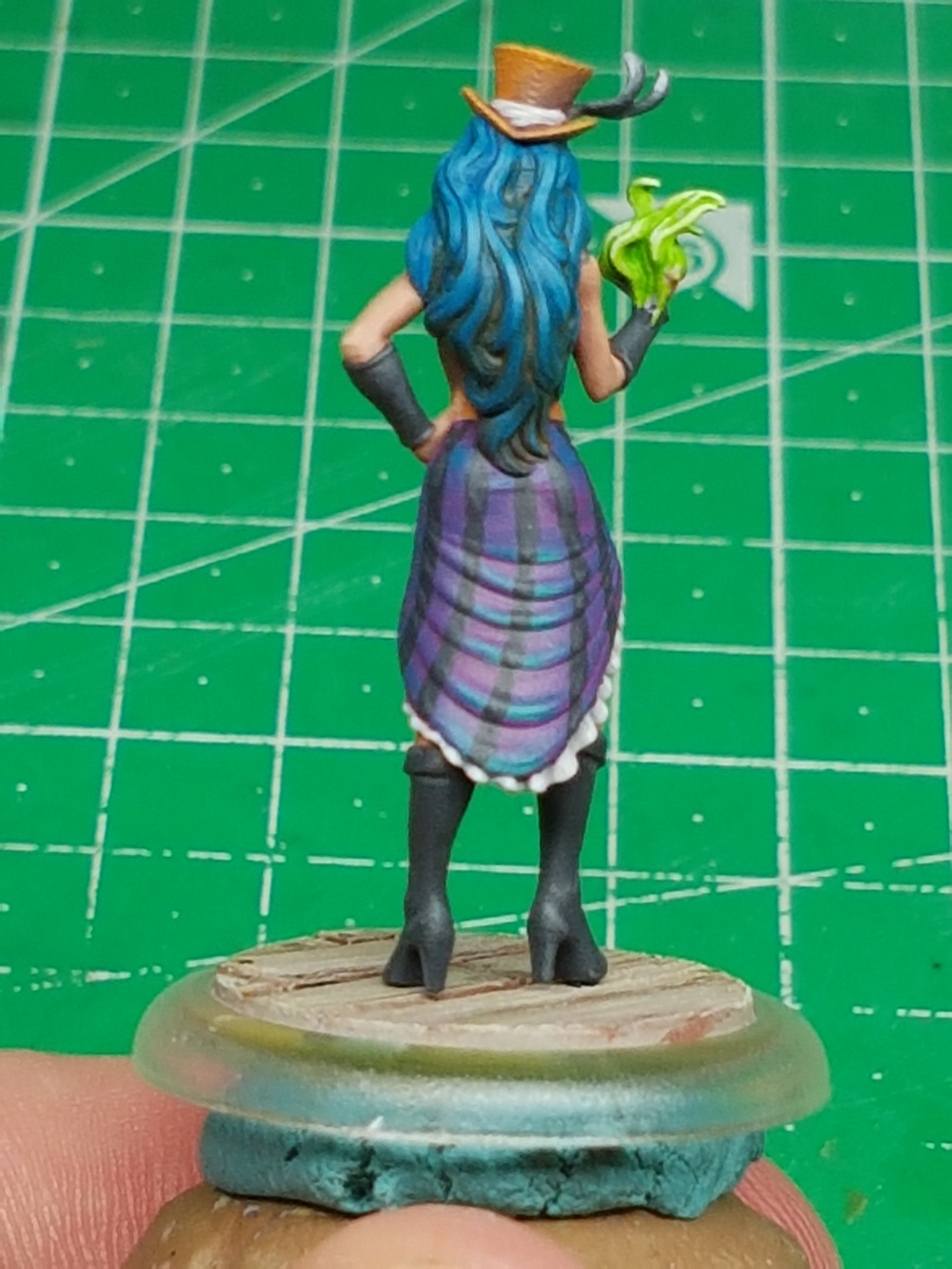We’re going to start out with something simple: the second Mannequin. This one is dedicated solely to Angelica. Thus she bears the same vibrant orange, shaded with dark greens and has a slightly different pattern to her apparel as her helper sister. I adore this models stance. I placed the head in a slanted angle to add more dynamic to it and make her look stricken with emotion. I must say that some of the model does not mix well with me. The sculpt and how it was molded make it really odd to paint. Some of the frame of her dress is uneven, dented or slanted in a way that makes it really troublesome to paint. Hence you will see quite a lot of mistakes here and there. Eventually you just ‘give up’ trying to paint the perfect miniature to play with.