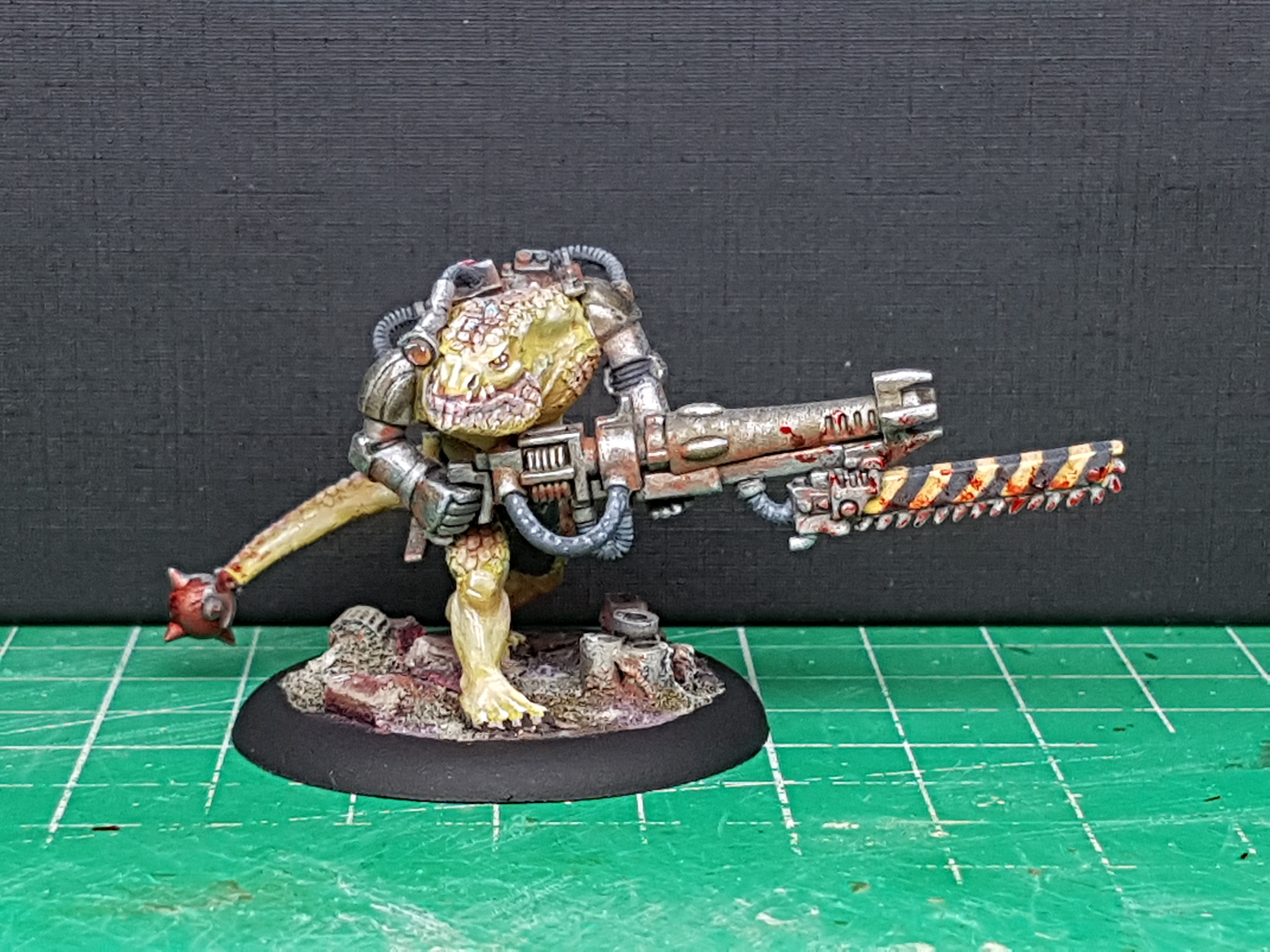 Luckily the commissions I had this year were flexible enough for me to experiment with a few things. Like painting leathers on the Manhunter from Kingdom Death Monster. Or just going nuts painting a crazy lizard mercenary for a friend’s birthday. The dwarf Rumbleslam team was a whole lot of fun to paint as well. It helped me practice with red tones and crazy toned bodies.