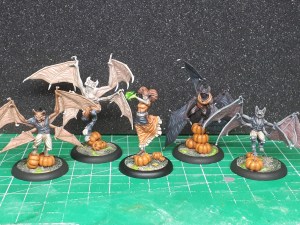 Here are some closer pics of the bat gang. I figured I would try to paint them all with different skin colors, similar to my regular zombies in my Halloween themed Resurrectionist gang. Belated I realised i forgot to add leaves to the bases, which is something I will do at a later time.
