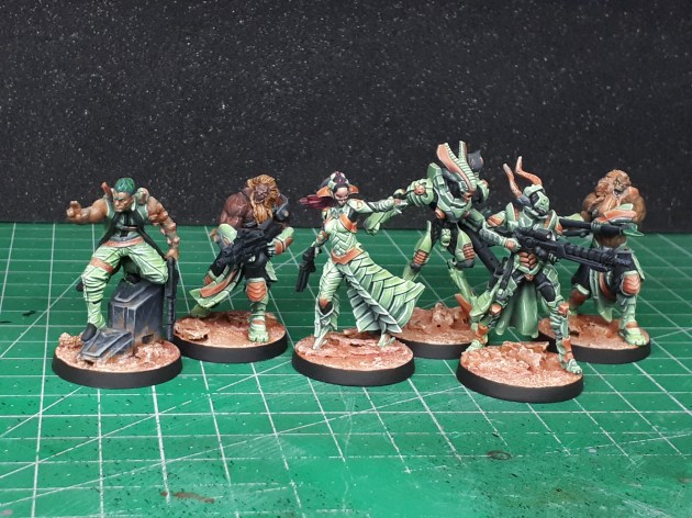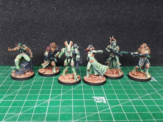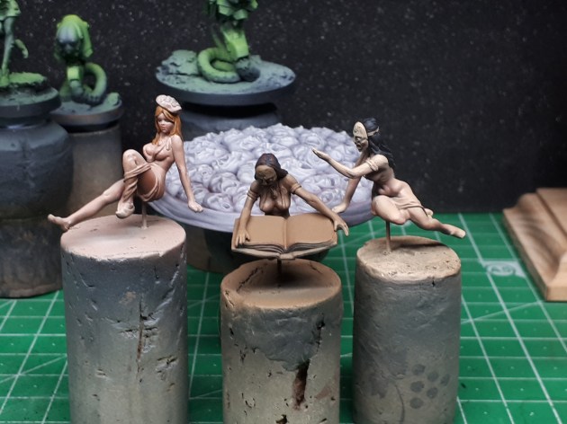 The next wave is well on its way. Here you can see all my creepy alien worms in their purple/red/brown glory. Also some not to alien looking ladies. Woop!
